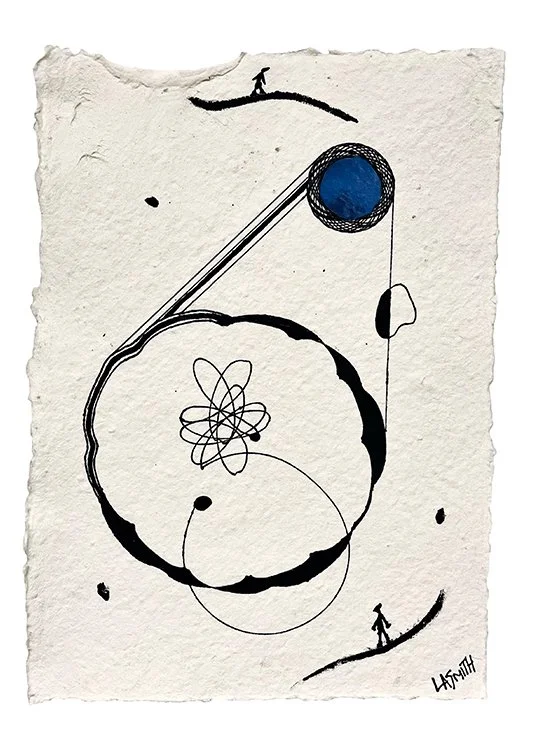 In geometry, a sphere is a perfectly symmetrical three-dimensional form in which every point is equidistant from the centre. The sphere represents a condition of balance, where no single point holds greater importance and the whole is formed through equal relation. Yet when translated into social contexts, this ideal of unity becomes unstable. Public spheres are rarely balanced: they fragment along lines of belief and perspective, forming multiple centres rather than a single shared core. In this contrast, the sphere becomes both a symbol of unity and a contemporary marker of division, revealing how systems built from equal parts can, through differing interpretations, produce separation rather than cohesion. Throughout the exhibition, Smith places the sphere in dialogue with contrasting lines and forms, symbolising how diverse opinions can live in harmony both on and off the paper.